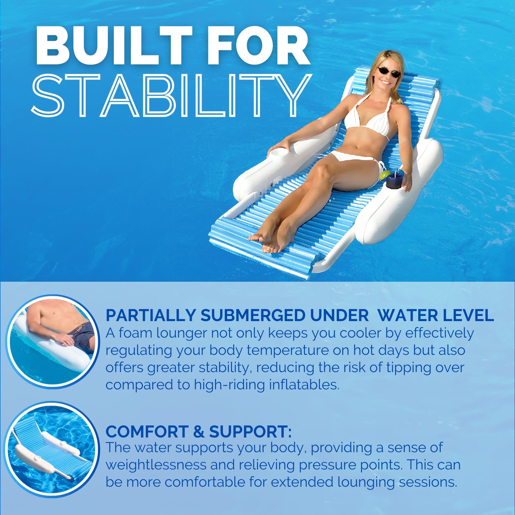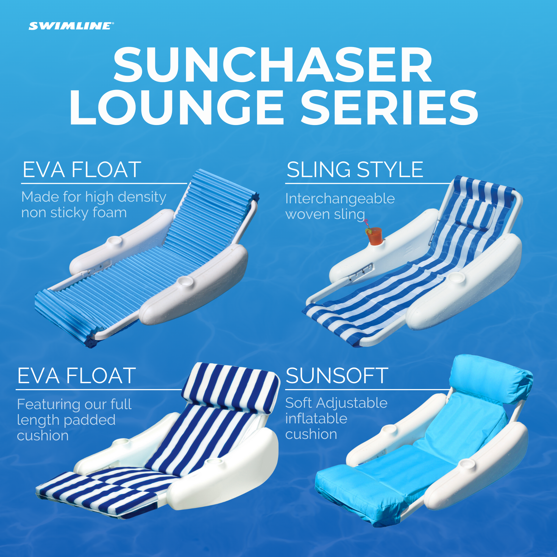 Swimline Sunchaser pool loungers offer something for every relaxation style. Choose from the classic molded design for simple durability, premium fabric-covered models for enhanced comfort, or luxury foam versions for the ultimate floating experience.